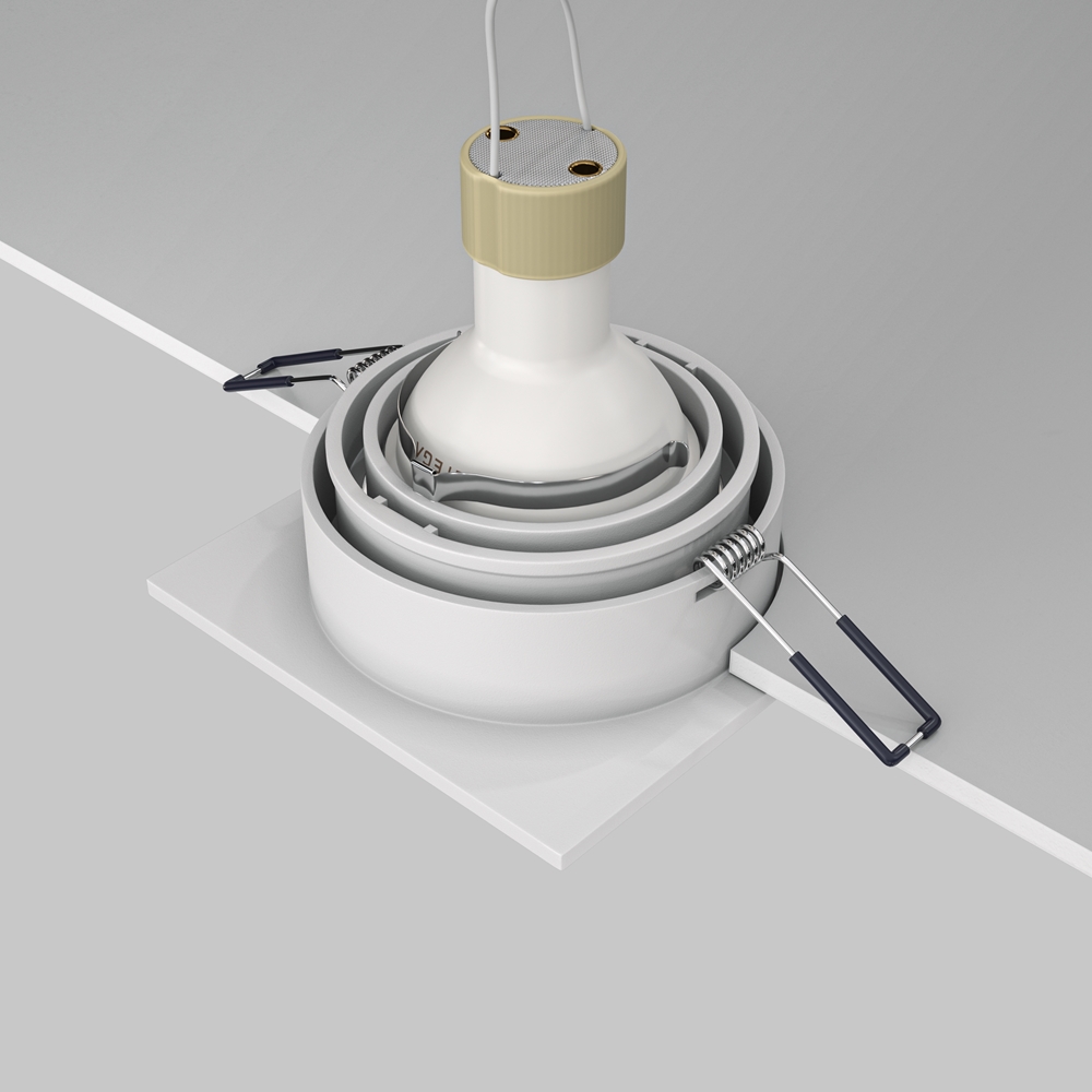 Recessed downlight, adjustable 25°. Powder coated metal body.