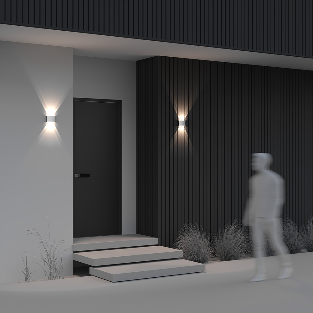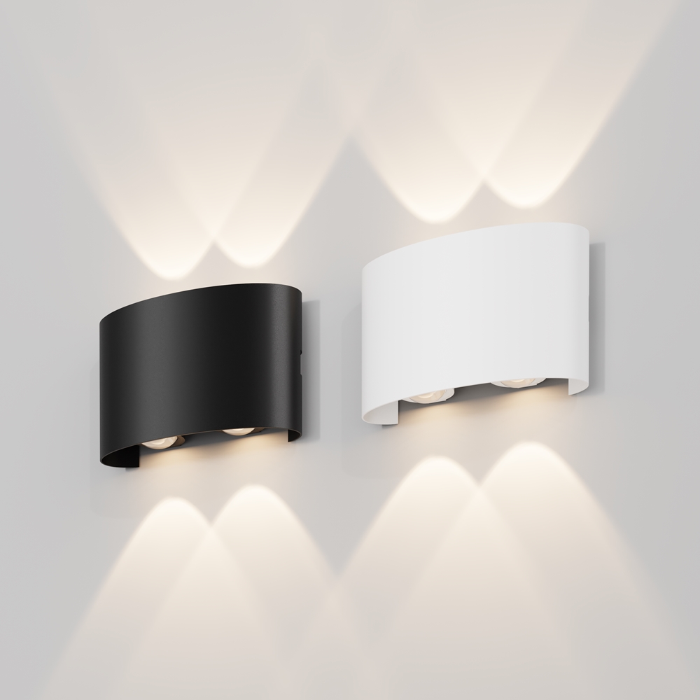 Models for wall-mounted outdoor architectural lighting. Featuring a metal housing resistant to temperature fluctuations and corrosion, with a high IP54 rating protecting against dust and moisture. Modern SMD LEDs ensure durable and reliable operation. The series includes luminaires with different power options (4W, 6W), available in models with either 4 or 6 light beams.