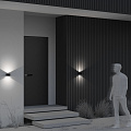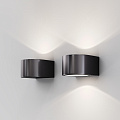 Aluminum body, shade - graphite. Minimalistic, compact design. Glow in one or two directions. LED light source. Color temperature — 3000K. Ingress Protection Code — IP 54.