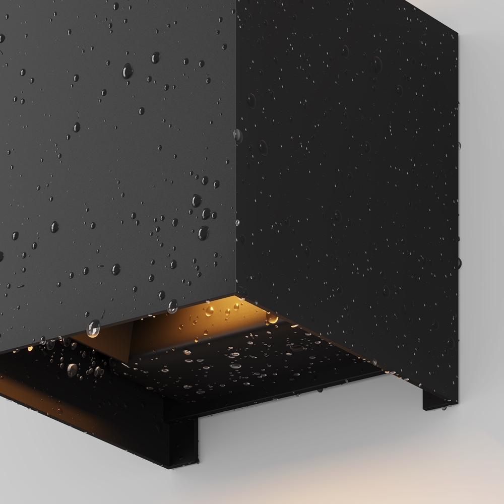 Wall-mounted street lamps for architectural artistic illumination. Designed for architectural artistic illumination, these lamps feature movable curtains to adjust the angle of the light flux, allowing for individualized light graphics. The oval and rectangular-shaped bodies are crafted from corrosion-resistant aluminum and powder-coated. LED modules serve as the light source, available in black and white colors.