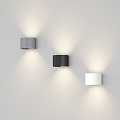 Wall-mounted street lamps for architectural artistic illumination. Designed for architectural artistic illumination, these lamps feature movable curtains to adjust the angle of the light flux, allowing for individualized light graphics. The oval and rectangular-shaped bodies are crafted from corrosion-resistant aluminum and powder-coated. LED modules serve as the light source, available in black and white colors.