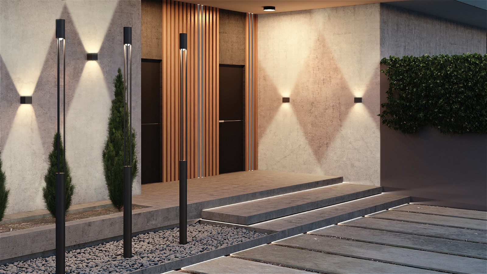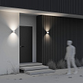 Wall-mounted street lamps for architectural artistic illumination. Designed for architectural artistic illumination, these lamps feature movable curtains to adjust the angle of the light flux, allowing for individualized light graphics. The oval and rectangular-shaped bodies are crafted from corrosion-resistant aluminum and powder-coated. LED modules serve as the light source, available in black and white colors.