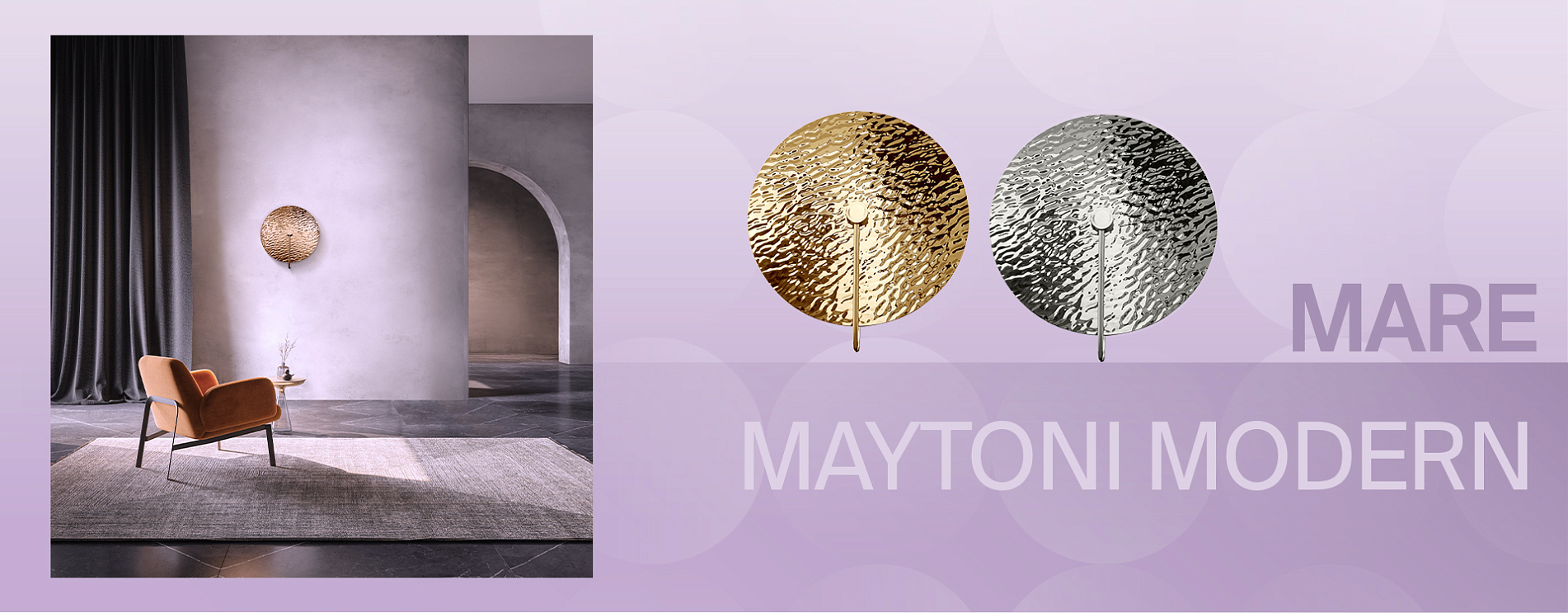 The sea smoothness is endless and every its pattern is unique. When developing the Mare series, designers were inspired by the natural images: raised surface of lampshade reminds us of the magnificence and attraction of expanses of sea. Still, another effect is also achieved using the original texture: the lamp is virtually impressed in an endless motion. The wall lamps are made of metal and glass in two trendy shades: chromium and gold. The light source is covered by a decorative reflector having an external mirror coating. The light flux envelops softly the glass element and reflexions of surrounding objects on its surface.