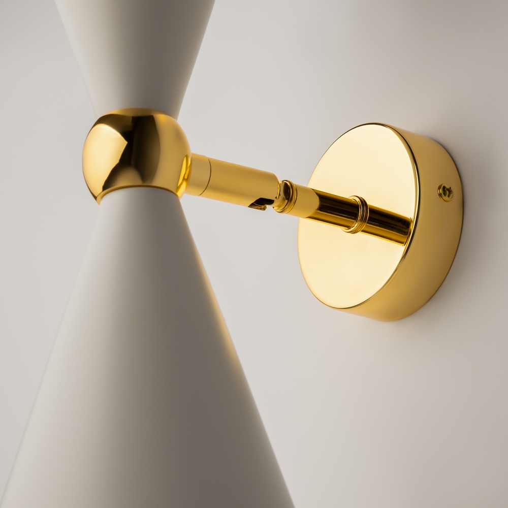 Herraje de metal, matiz dorado. Los plafones metálicos por dentro están pintados de color dorado. El lado exterior está en dos variantes: negro y blanco. Mecanismo de giro, los brazos giran.