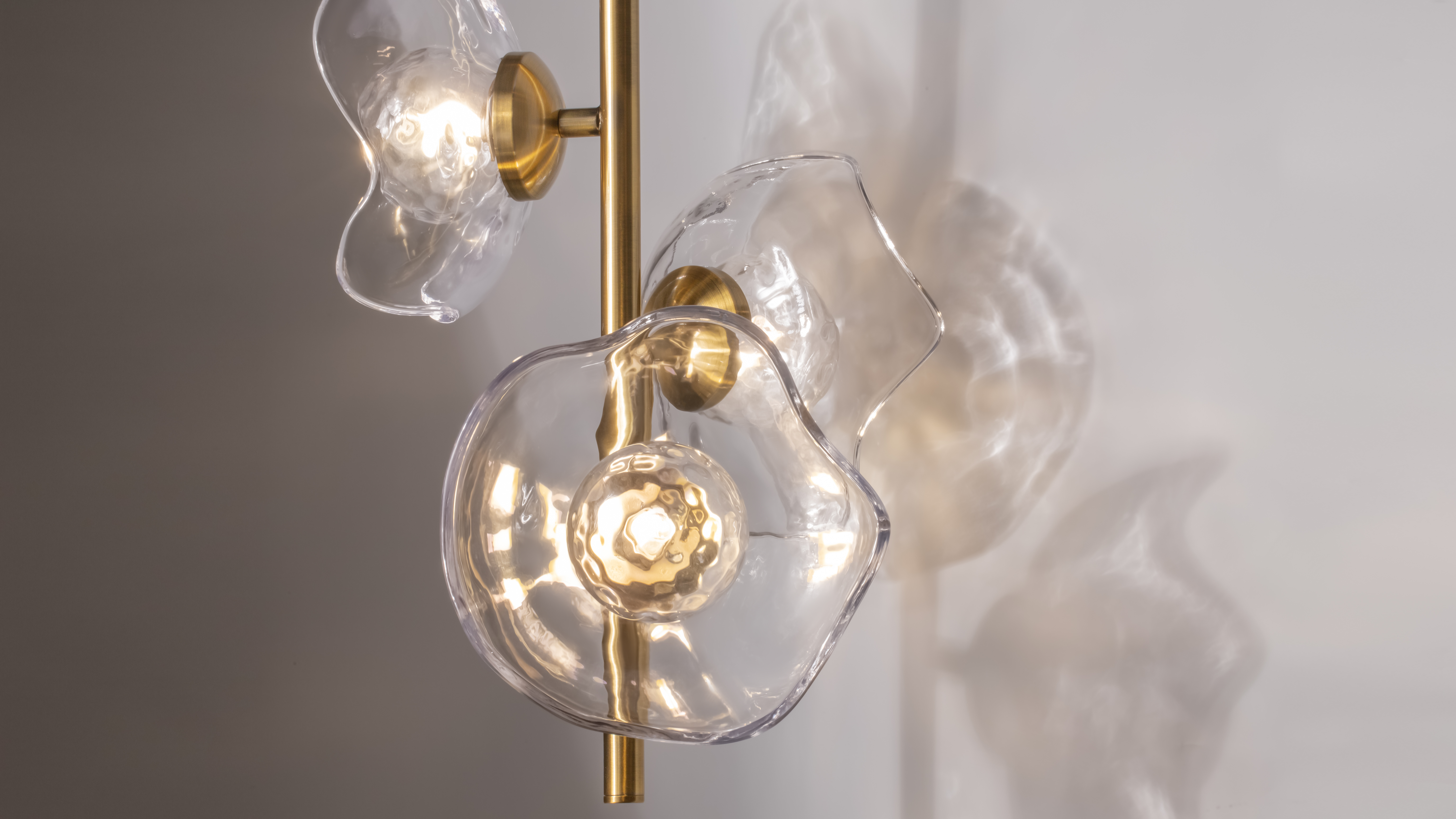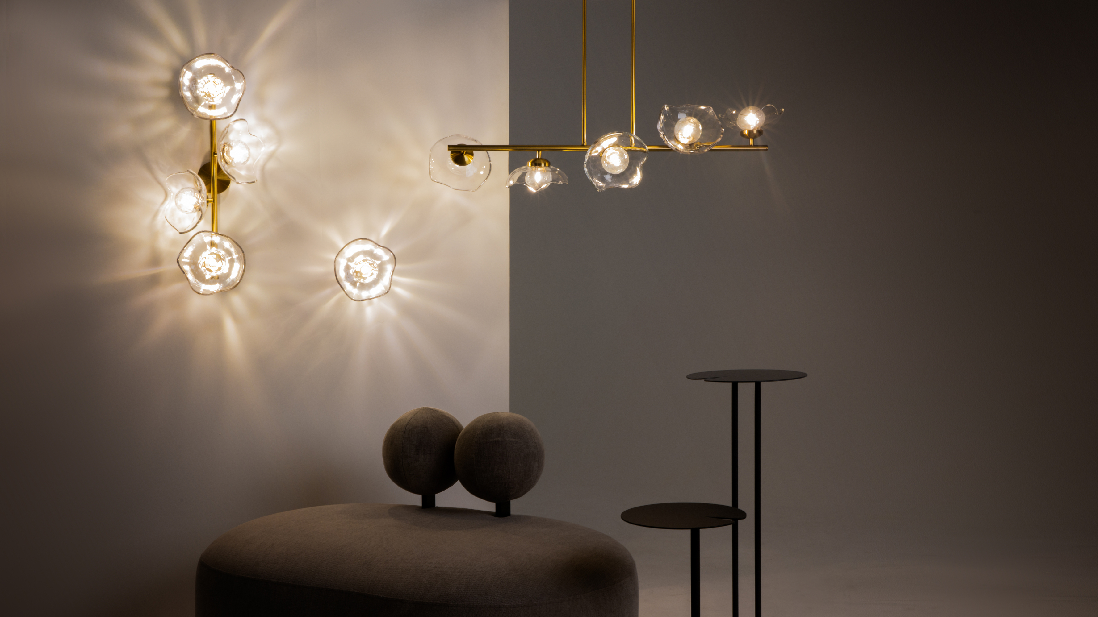 Las lámparas de la serie Miracle se combinan idealmente entre sí, lo que creará un concepto único en el interior. Una selección de lámparas de pared con una, dos o tres pantallas, la lámpara colgante para iluminación puntual y la lámpara colgante para iluminación principal.