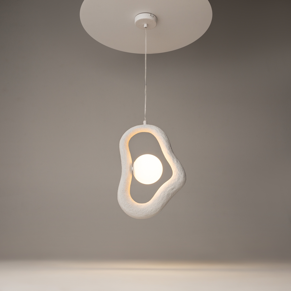 La colección incluye luminarias colgantes y de mesa con formas suaves y orgánicas que evocan contornos naturales. Las esculturales siluetas de los modelos, presentados en dos opciones de color hormigón multicapa y pintura blanca texturizada, los convierten en auténticos objetos de arte.