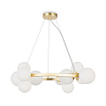 Herraje de metal de 4 colores: negro mate, negro, cromo, oro. Plafones: vidrio soplado. Colores: ahumado, ambarino, coñac, blanco mate y negro. Diseño con imitación de estructura molecular. La altura de las lámparas colgantes se regula con el cable. Bombilla con el casquillo G9.