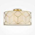 Herraje de metal color de oro. Pantalla: lino natural en PVC. Un ornamento de metal ciñe la pantalla. Dispersor mate.