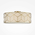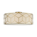 Herraje de metal color de oro. Pantalla: lino natural en PVC. Un ornamento de metal ciñe la pantalla. Dispersor mate.