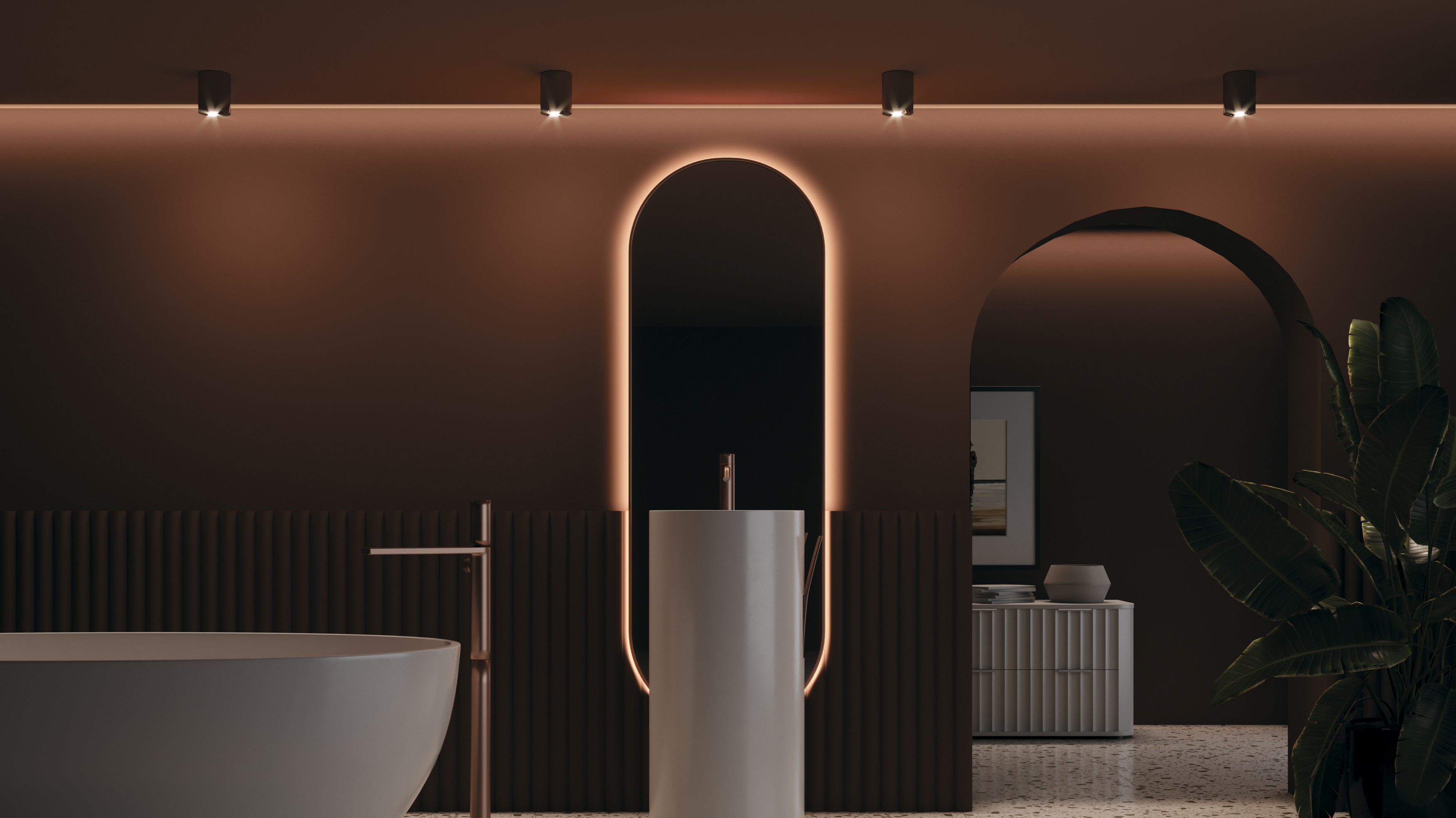 Luz dirigida de las bombillas GU10 para acentuar con la luz y organizar el alumbrado zonal.