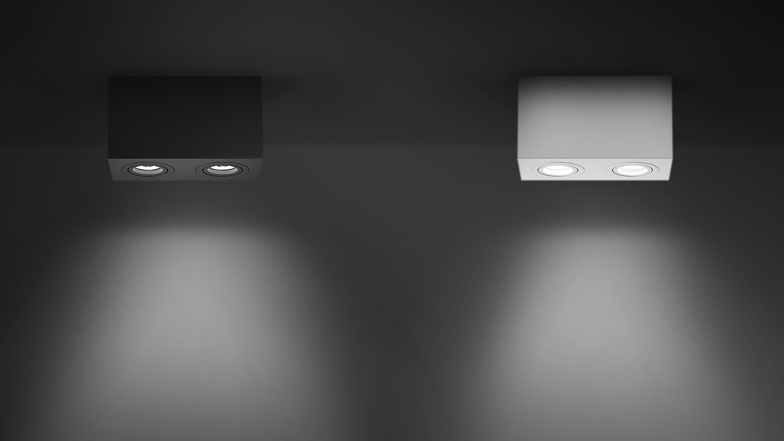 Una geometría simple y el casquillo popular GU10 para zonificar y acentuar con la luz.