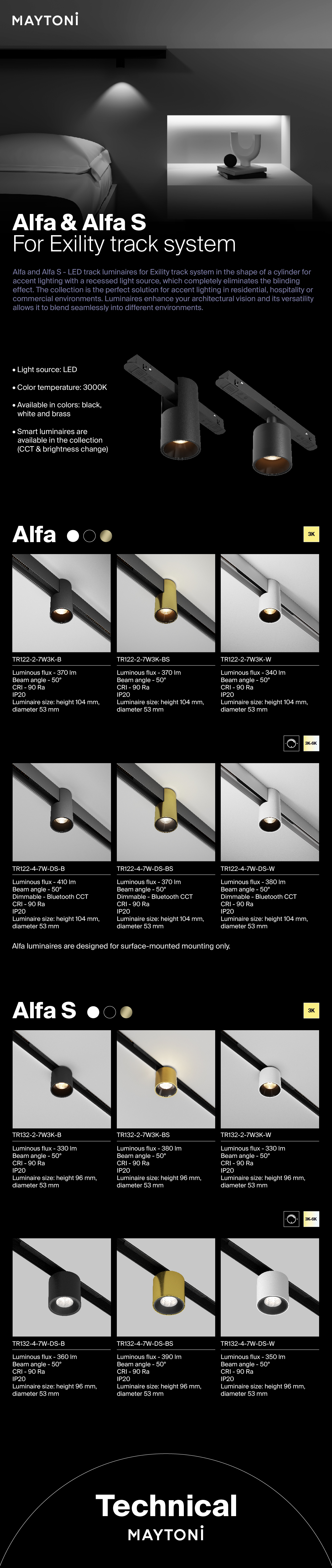 Lámpara de carril Alfa Exility 2700-6000K 7W 50° Dim Smart
