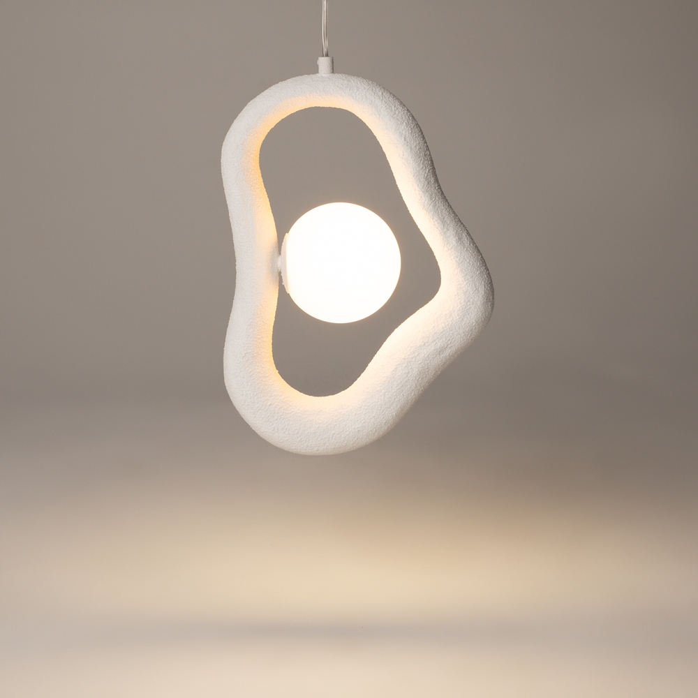 Die Kollektion umfasst Pendel und Tischleuchten mit sanften, organischen Formen, die an natürliche Linienführungen erinnern. Erhältlich in zwei Ausführungen – geschichtetem Beton oder strukturierter Weißbeschichtung – werden die skulpturalen Silhouetten dieser Leuchten zu wahren Kunstobjekten im Raum.