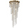 Struttura in metallo, nastro di ottone, finitura oro antico. Pendenti in cristallo.