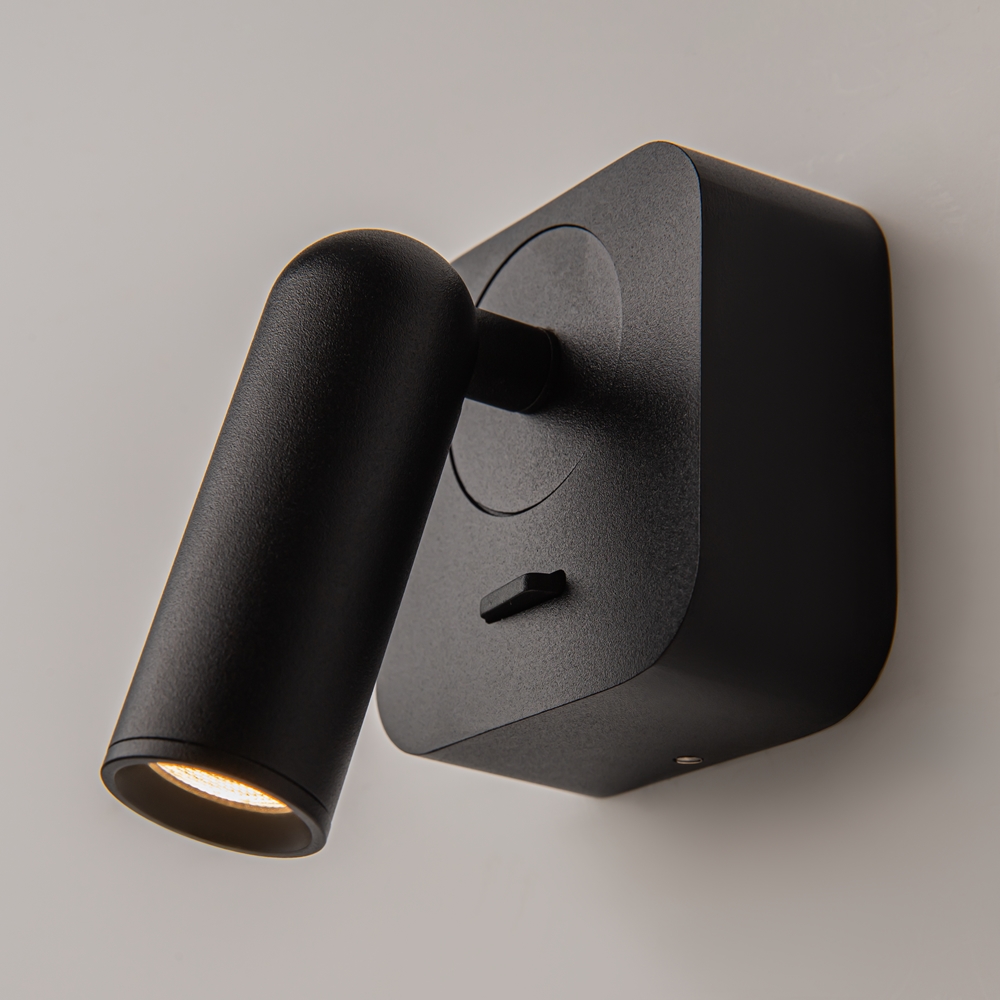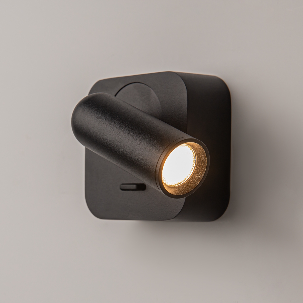 Corpo in metallo. Meccanismo girevole per la regolazione del flusso luminoso. Sorgente luminosa LED.