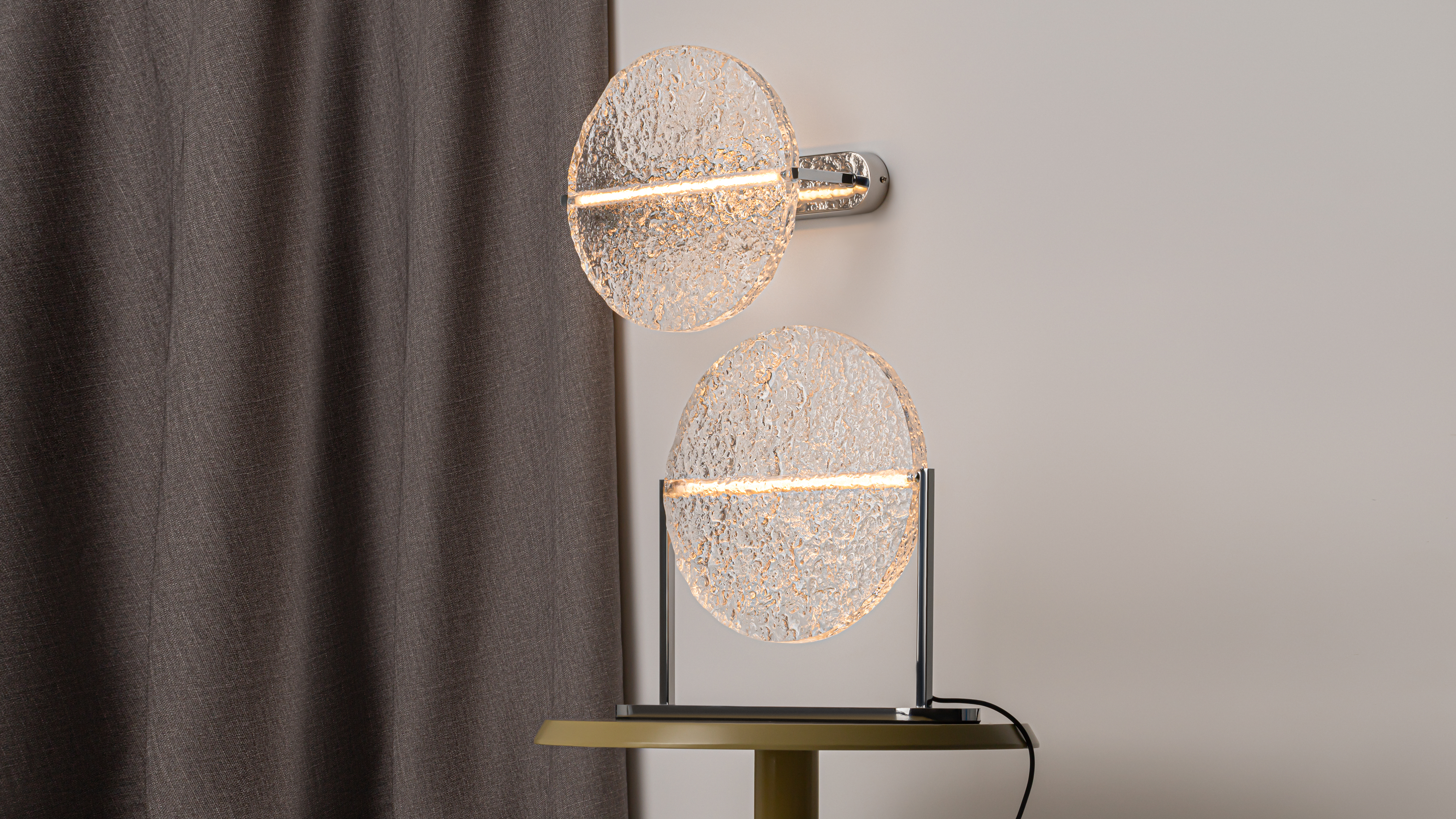 La serie MÅNGATA, che in svedese significa “riflesso della luce lunare sull'acqua”, evoca la bellezza poetica del chiaro di luna. Una lampada rotonda su gambi di metallo si riflette nella base a specchio, creando un'ipnotica illusione della profondità e del infinito.