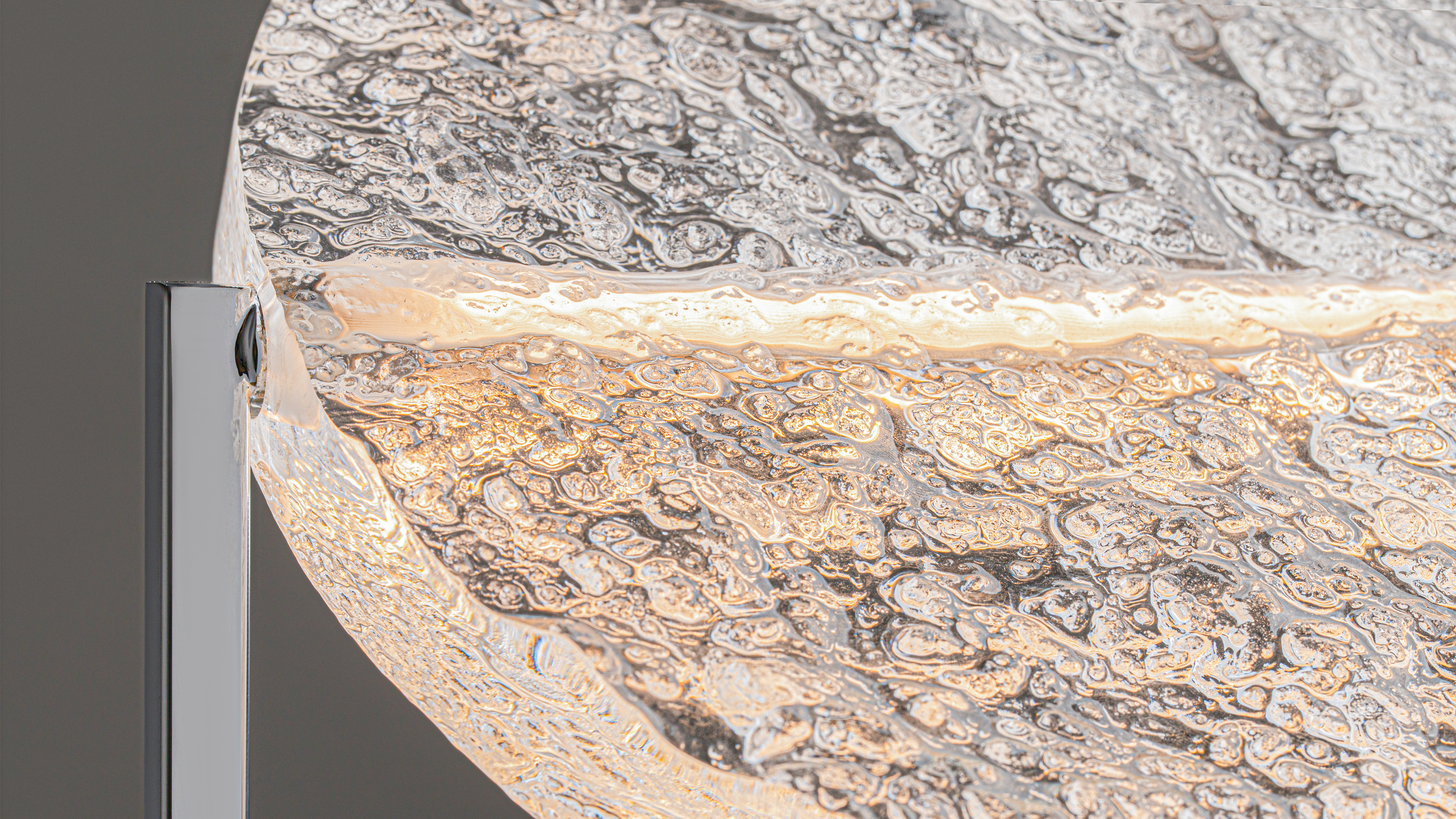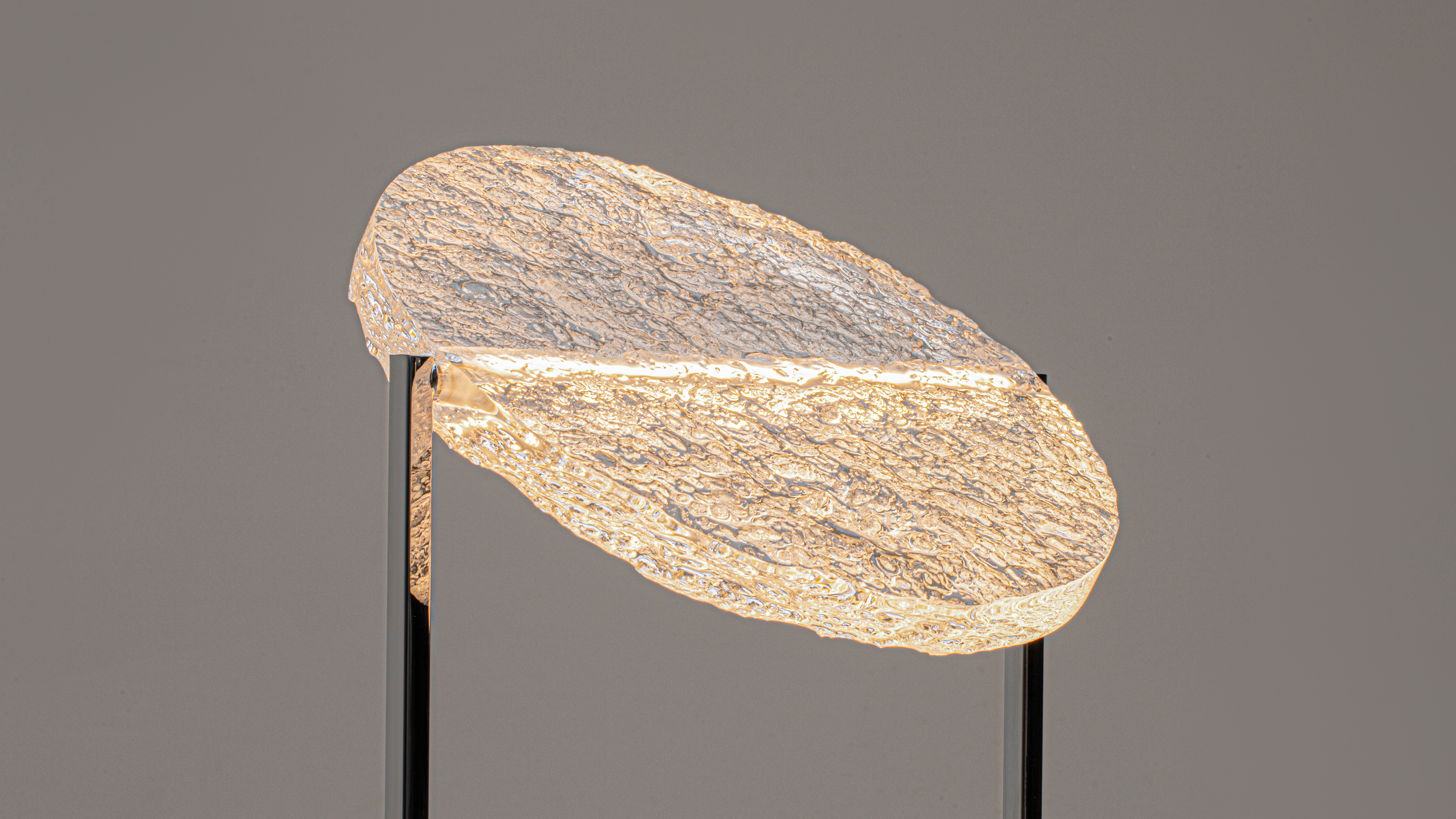 La combinazione di una base in metallo cromato ed acrilico strutturale crea un equilibrio tra tecnologie moderne ed estetica naturale.