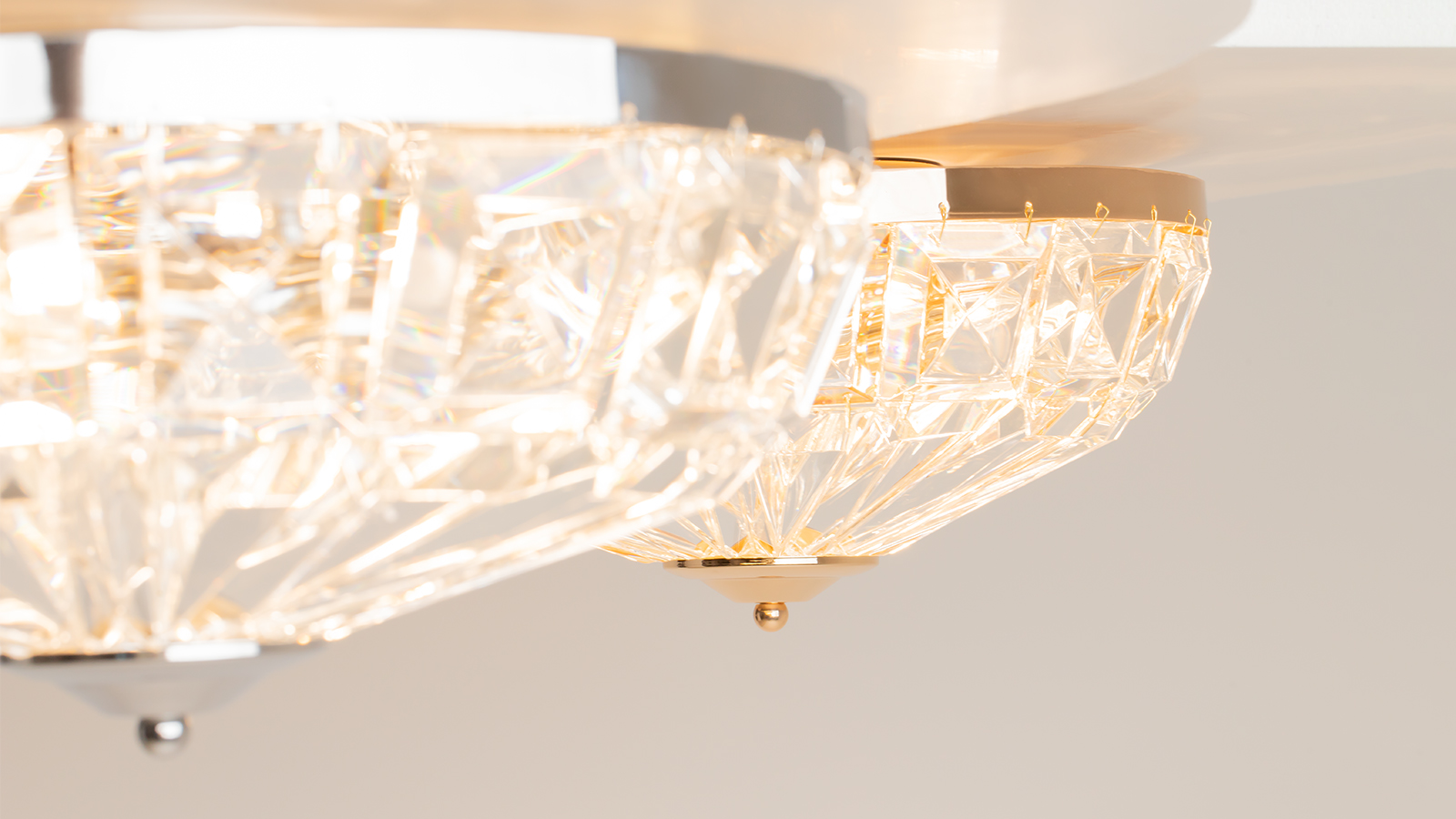 Masywne krawędzie kryształów to element akcentujący w projektowaniu serii Facet, który pozwala jej stać się głównym obiektem uwagi w nowoczesnym i klasycznym otoczeniu. Przezroczysty kryształowy wystrój wyróżnia się dużym szlifem architektonicznym-podkreśla odważny i dynamiczny wizerunek modelu. Metalowe oprawy są prezentowane w dwóch odcieniach: chrom i złoto, co pozwala wybrać lampę idealnie harmonizującą z otaczającą przestrzenią. Seria obejmuje 2 żyrandole sufitowe o różnych średnicach (na 4 i 6 lamp), a także kinkiety montowane na suficie. Wszystkie modele są wyposażone żarówkami z podstawą E14.