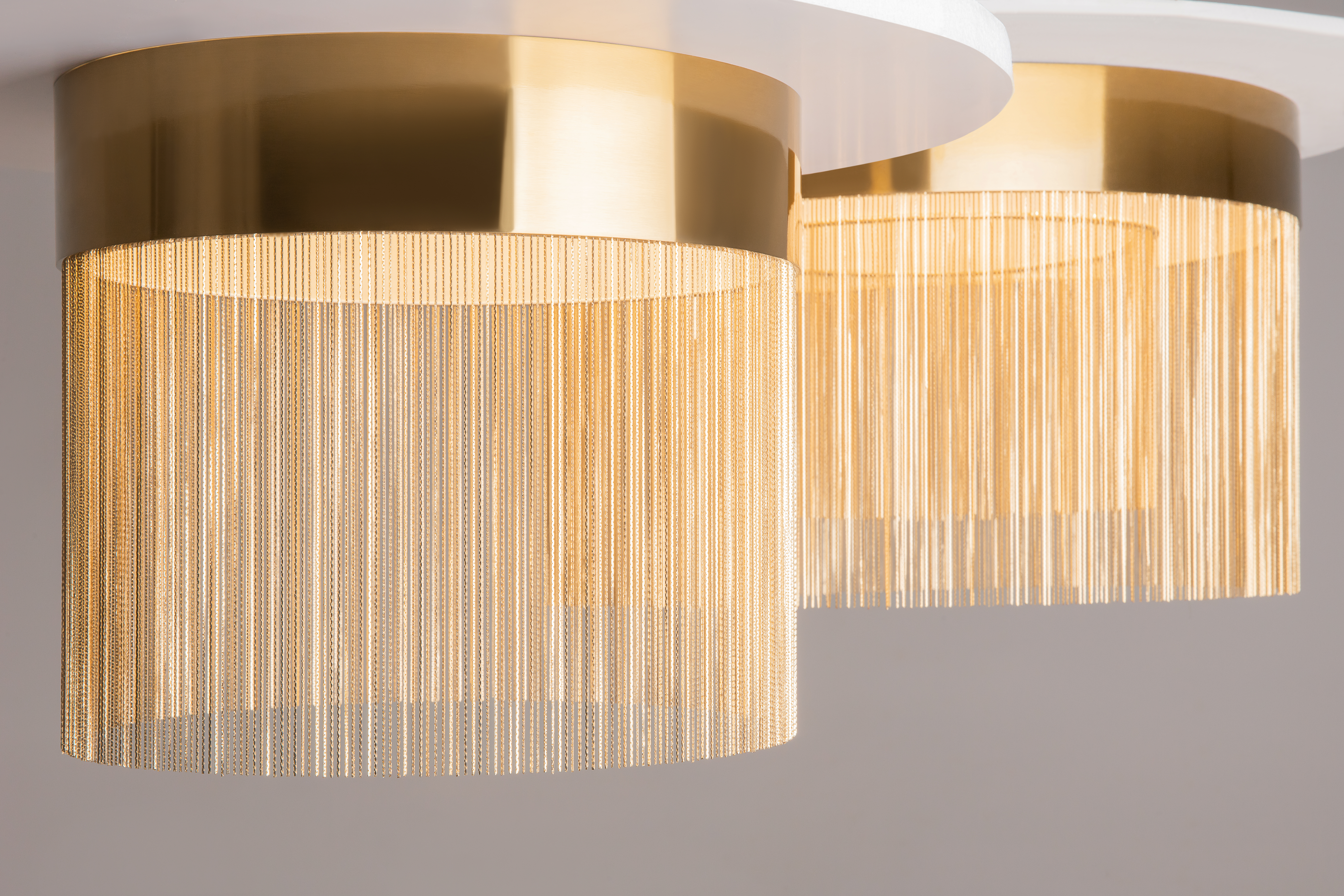 L’armatura metallica, il colore è oro. Motivi di gioielleria nel design. Le eleganti catene sul corpo della lampada creano i riflessi traboccanti. L’illuminazione a LED, la temperatura del colore-3000 K. Le lampade a sospensione sono regolabili in altezza.