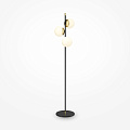 Armatura in metallo colore oro opaco. Plafoniere a sfera in vetro soffiato opaco. Asimmetria alla moda nel design. Sorgente luminosa - lampadine con attacco E14.