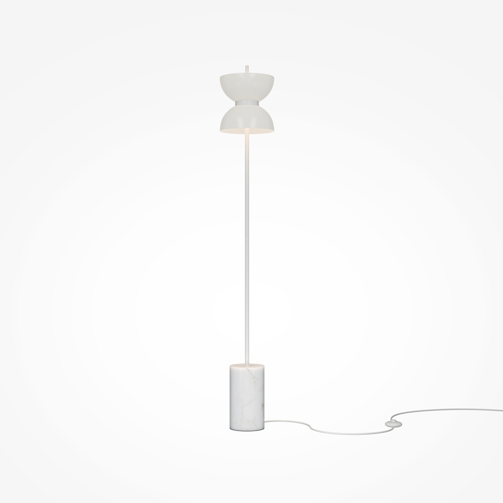 La lampada ha un design unico vale a dire sulla base metallica in alto e in basso sono montati paralumi in vetro bianco lucido. Design conciso ha una funzione pratica: nasconde i dispositivi di fissaggio della base e rende una lampada costante e affidabile.