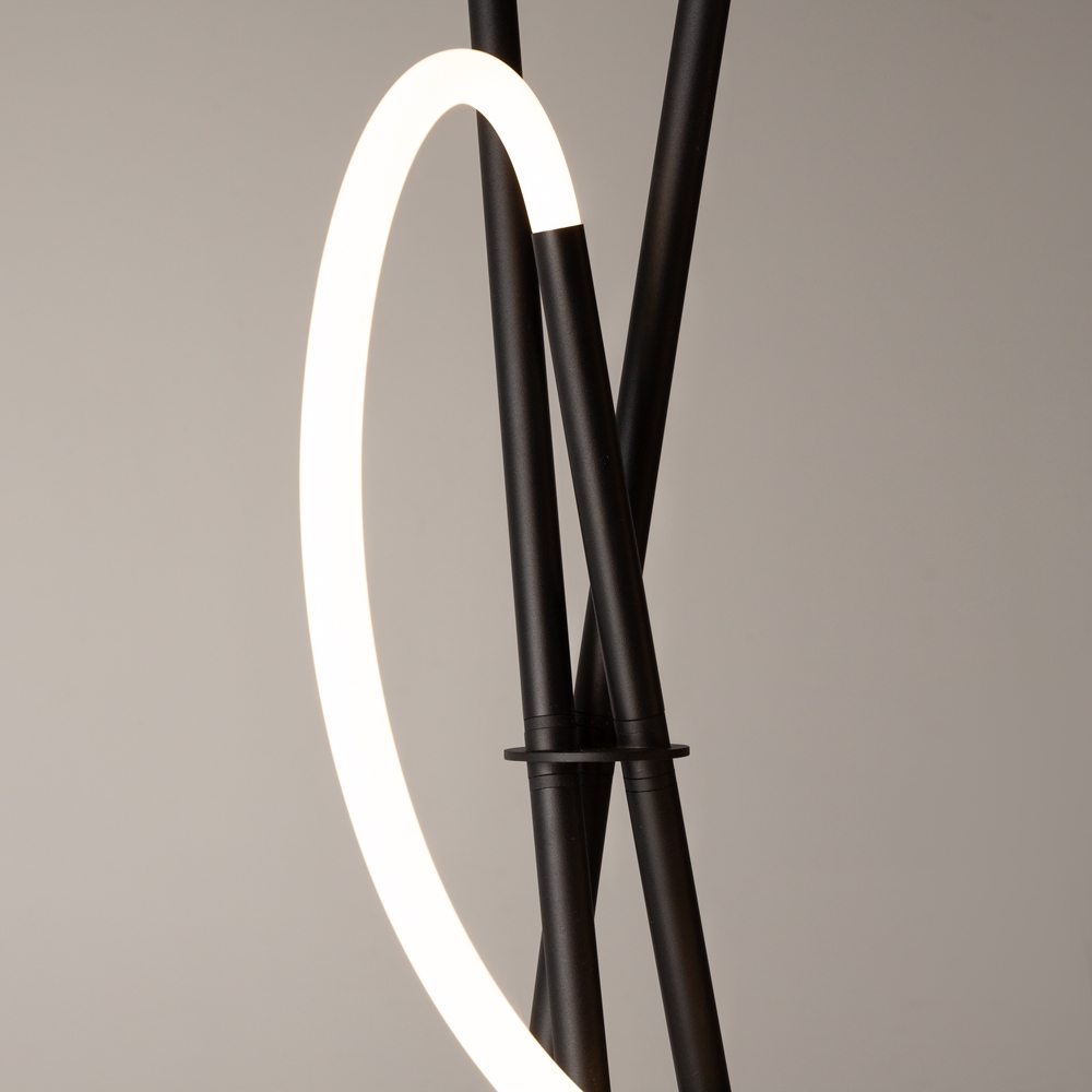 La serie Crochet è una combinazione di eredità culturale, un design sofisticato ed una eleganza funzionale. Le lampade di questa serie illuminano gli spazi raccontando la storia di un antico mestiere, portando un tocco di tradizione nelle case moderne e creando un'atmosfera accattivante di calore e design senza tempo. La struttura metallica di una lampada da terra che ricorda la struttura intrecciata dei ferri da maglia è abbinata a un diffusore flessibile in silicone le cui anse richiamano la raffinata arte dell'uncinetto.