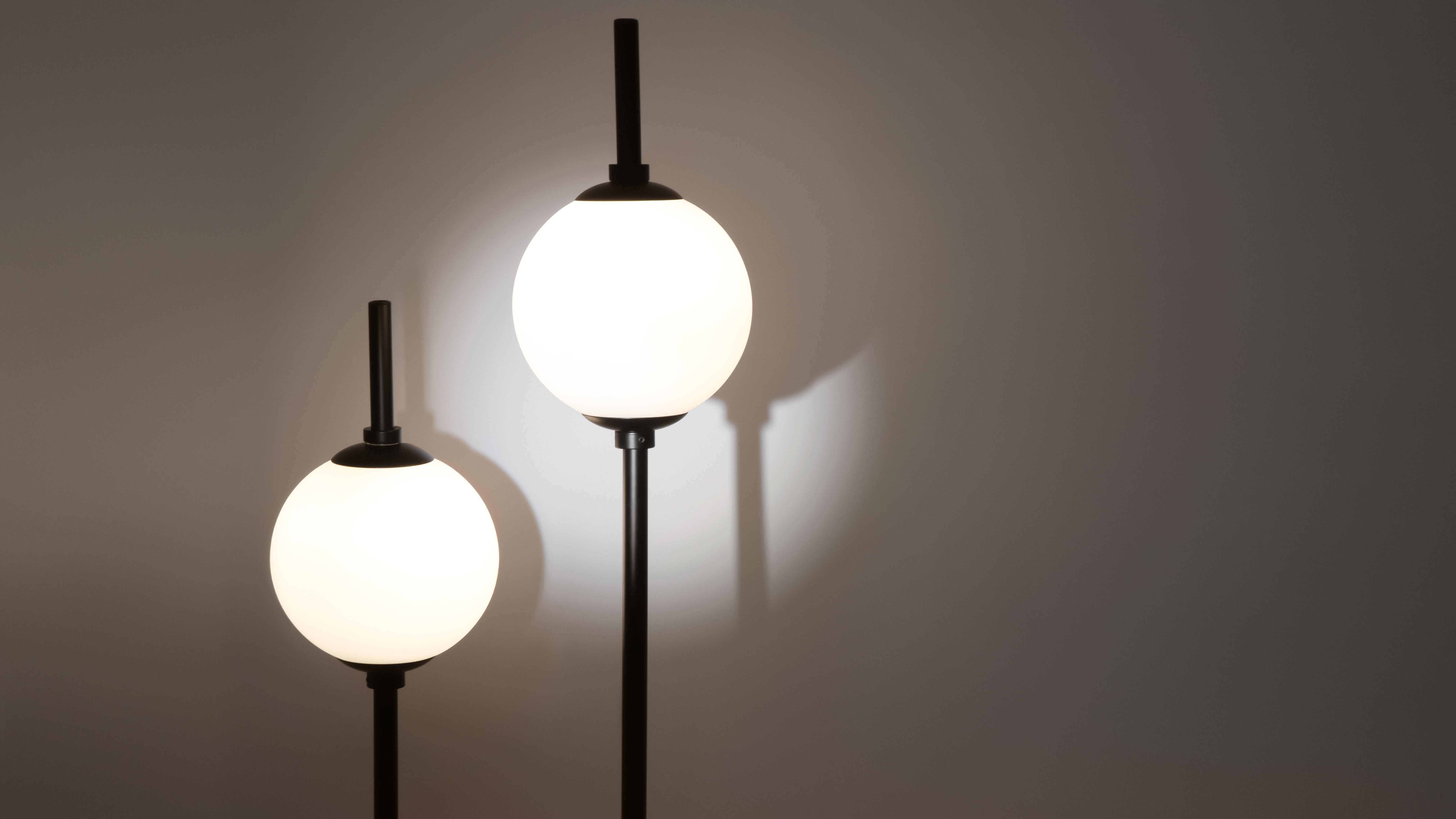 Le lampade da terra della serie «The sixth sense» dotate per un sistema di controllo leggero e un design speciale: gli interruttori si trovano sopra i paralumi che possono essere raggiunti senza alzarsi da un posto, la funzione dell’accensione separata consente di accendere sia una lampada da terra che due.