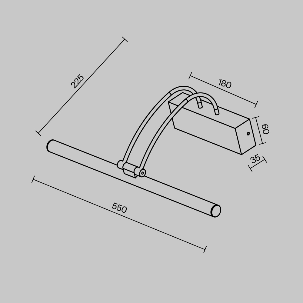 Corpo in metallo colore nero e bronzo. Diffusore in PC. Modulo LED, temperatura di colore 3000K. La cerniera girevole dirige la luce all'angolazione desiderata.