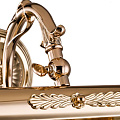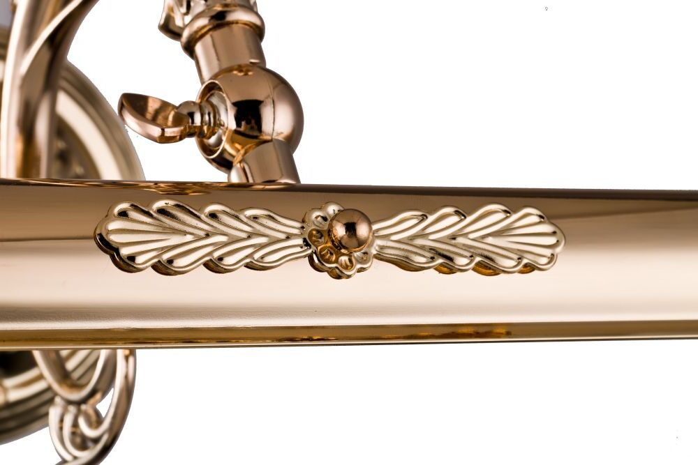 Struttura metallica decorativa in tre tonalità: bianco, bronzo e oro. Piede a rosetta classica. L'inclinazione dell’illuminazione è regolata da una cerniera meccanica montata sulla staffa.