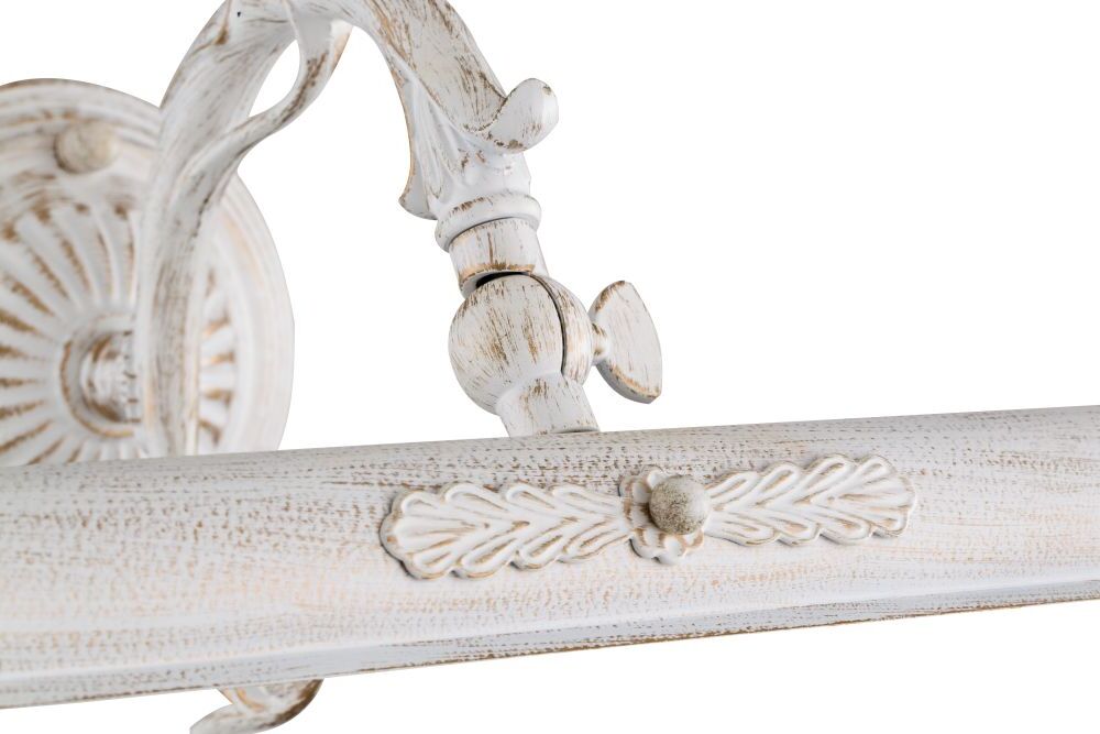 Struttura metallica decorativa in tre tonalità: bianco, bronzo e oro. Piede a rosetta classica. L'inclinazione dell’illuminazione è regolata da una cerniera meccanica montata sulla staffa.