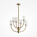 L’armatura in metallo è zincata nel colore dell'ottone. I paralumi sono in vetro soffiato trasparente con una texturazione in rilievo. Le lampade a sospensioni sono regolabili in altezza.