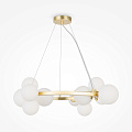 Ferramenta in metallo in 4 colori: nero opaco, nero, cromo, oro. Plafoniere - vetro soffiato. Colori: affumicato, ambra, cognac, bianco opaco e nero. Design con imitazione della struttura molecolare. L'altezza delle lampade a sospensione è regolabile con un cavo. Lampadina con attacco G9.