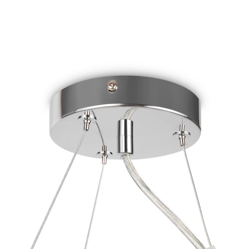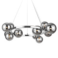 Ferramenta in metallo in 4 colori: nero opaco, nero, cromo, oro. Plafoniere - vetro soffiato. Colori: affumicato, ambra, cognac, bianco opaco e nero. Design con imitazione della struttura molecolare. L'altezza delle lampade a sospensione è regolabile con un cavo. Lampadina con attacco G9.