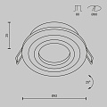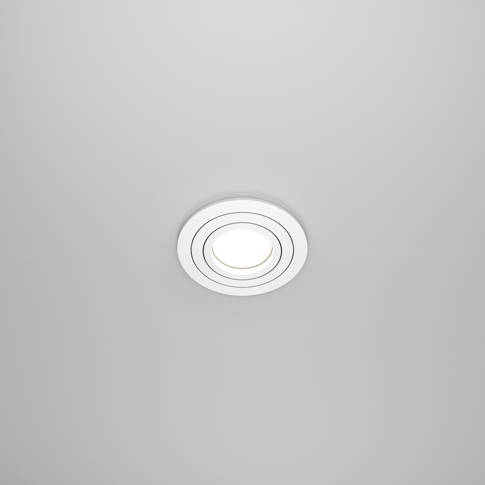 Faretto da incasso, orientabile a 25°. Corpo in metallo verniciato a polvere.