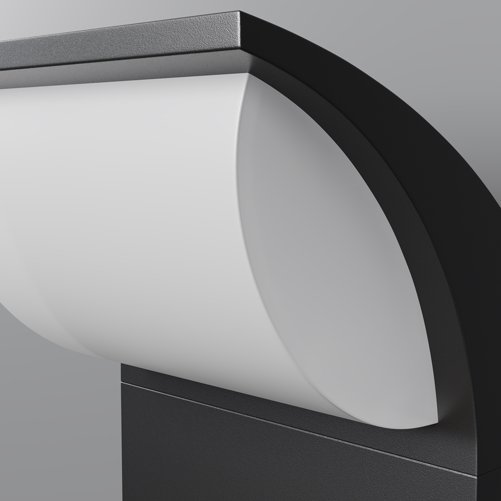 Il materiale del corpo è alluminio, il colore è grafite. Il diffusore bianco opaco. Sorgente luminosa a LED. La temperatura del colore è di 3000 K. La presenza di un sensore di movimento incorporato nel modello a parete. Il grado di protezione e’ IP54