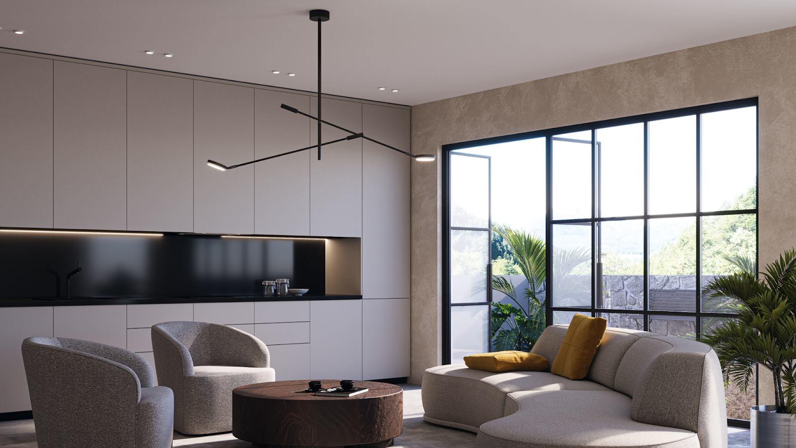 Die Gehäuse und Kuppelleuchten sind aus Metall gefertigt und in Mattschwarz oder Weiß erhältlich. Die Bildschirme drehen sich horizontal um 340 ° und vertikal um 90 °, was eine flexible Lichtausrichtung ermöglicht. Ein matter Acryl-Diffusor sorgt für eine sanfte Lichtverteilung und ein integriertes LED-Modul sorgt für Energieeffizienz. Die Wandleuchten und Tischlampen sind mit einem Dimmer ausgestattet, sodass man die Helligkeit nach den Wünschen einstellen kann.