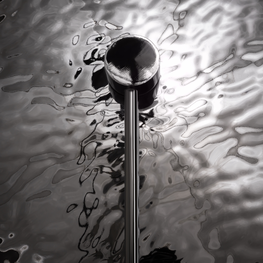 Źródło światła jest ukryte pod dekoracyjnym odbłyśnikiem z zewnętrzną powłoką lustrzaną. Strumień świetlny delikatnie otacza szklany element i utrzymuje odbicie otaczających obiektów na jego powierzchni, a niezwykły efekt wizualny tworzy dodatkowy stylowy akcent we wnętrzu.