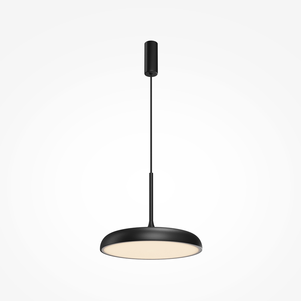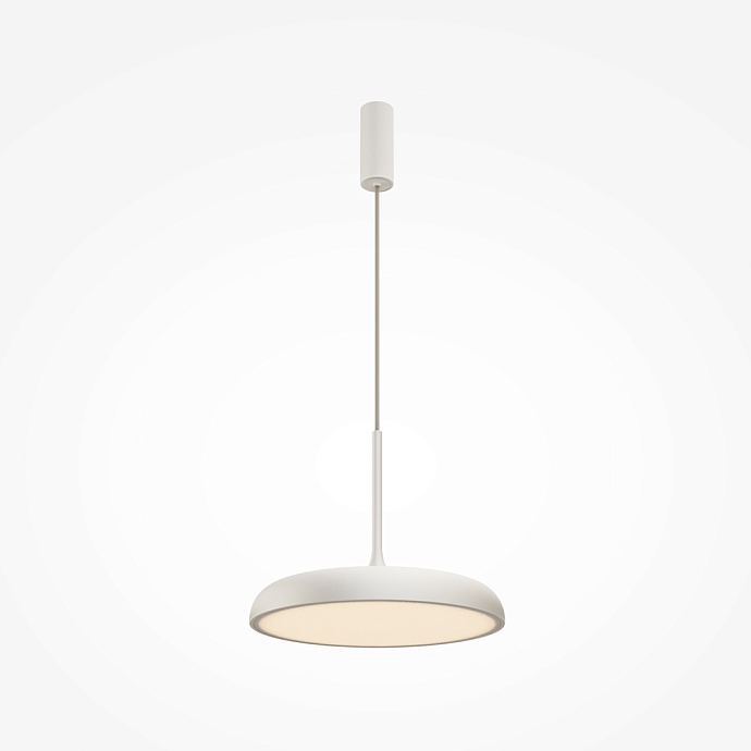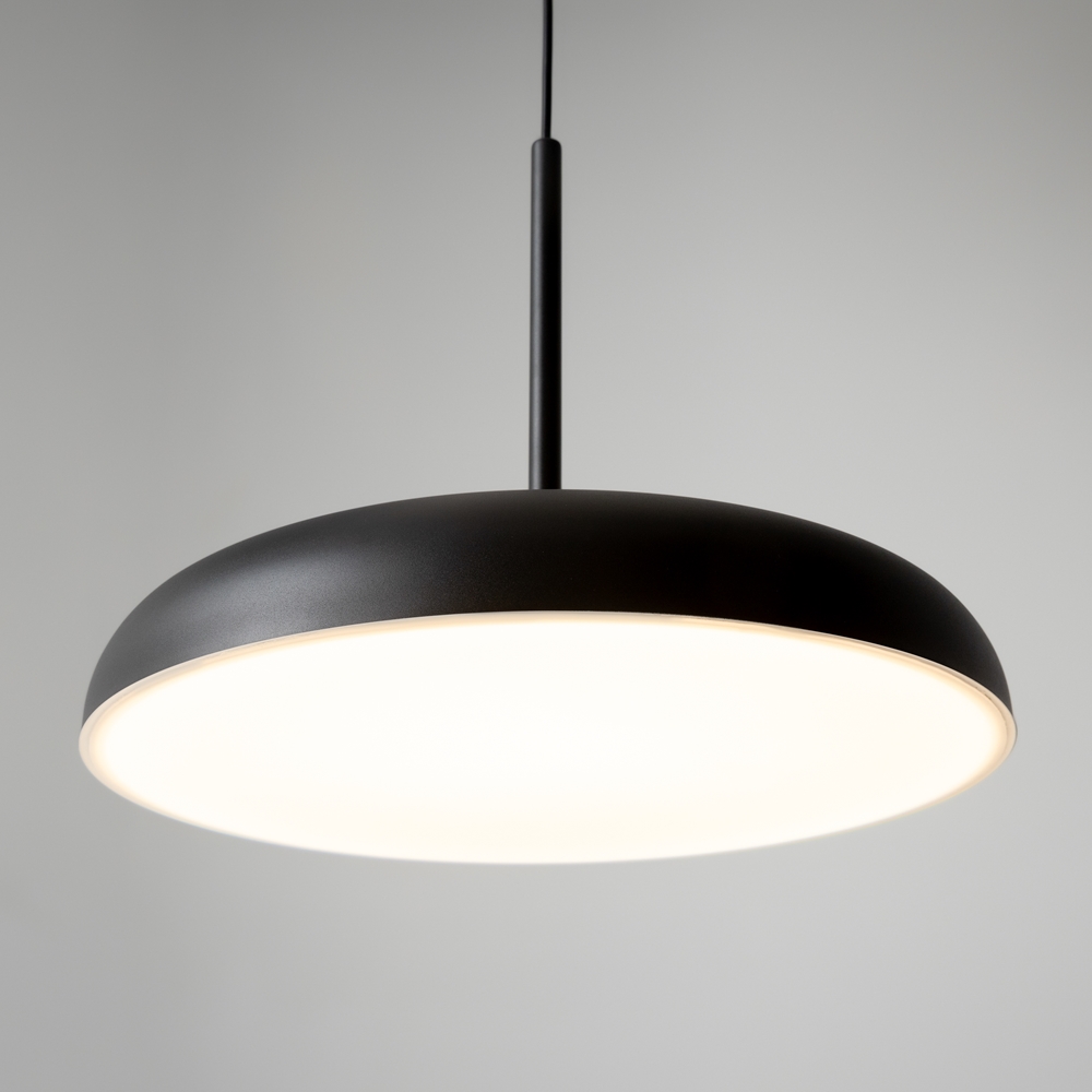 Armatura i klosz są z metalu, kolory są czarny, biały, szary. Powierzchnia shagreen zapobiega powstawaniu śladów rąk i kurzu. Biały matowy akrylowy dyfuzor dobrze przepuszcza światło, zapobiega efektowi oślepiania. Regulowana długość linii-do 3 metrów. Źródło światła jest LED. Temperatura barwowa jest 3000K.